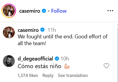 Shortly after the stalemate, Casemiro took to Instagram to mention that it was a good effort and the team fought until the end.